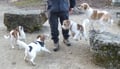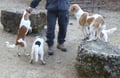 Auch Leckerli geben für alle drei, Tuba, Wurzel und Amiro nebeneinander, im Sitz und Platz - kein Thema für das "kleine Herrchen" - wie in der Hundeschule, alle vier vorbildlich!