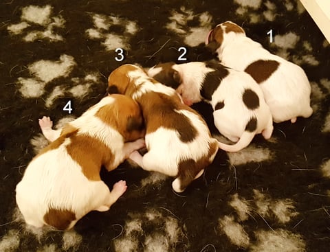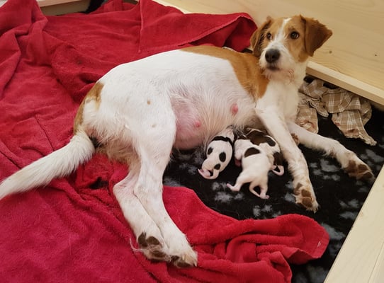 Dann gehts ruckizucki und Bijou bringt souverän und instinktsicher noch 3 Hündinnen zur Welt. Ein Mädchen-Glückskleeblatt, wie schön! Der Ultraschall zeigte 3 Welpen an, allerhöchstens ein