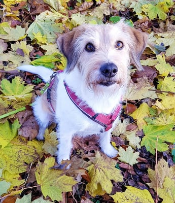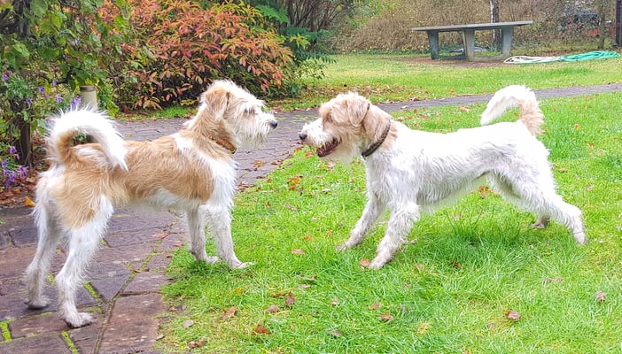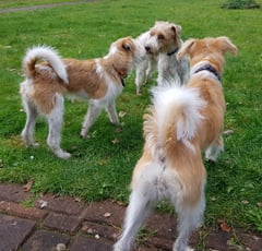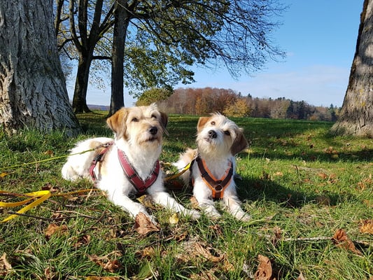 Aura kommt, wie Alma und Hummel auch, aus dem VRK Einkreuzprojekt. Alle drei Hundedamen freuen sich übereinander und Hummel und Alma flitzen durch den Garten und spielen Verstecken unter der Tanne, es ist eine Freude, zuzusehen.