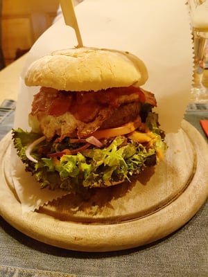 Wir sind kaum richtig eingerichtet, bringt die Bedienung schon Goodies für die Hunde - hier sind wir richtig. Und für uns kleine Menschlein gibts kleine Burger - passt!