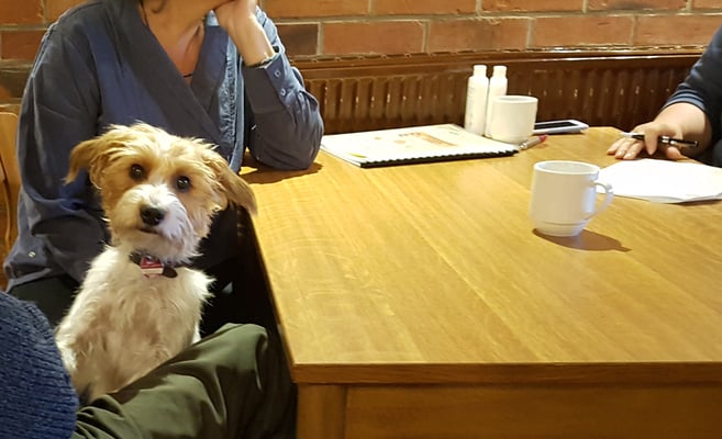 Der H-Wurf von den Rotenbeker Vierpfötern ist vollzählig erschienen, sogar der Papa und die Mama sind da - beide Kromis sitzen mit zweibeinigem Anhang in der Gaststube und geniessen das Klönen mit den H-Wurf-Kindern. toll!