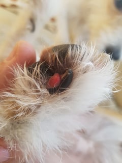 Am Donnerstagabend war alles so blutig, dass ich gar nicht richtig sah, wo genau die Kralle abgerissen war, ich dachte noch, es sei nur das vorderste Stück ein wenig abgerissen. Ja Pustekuchen.