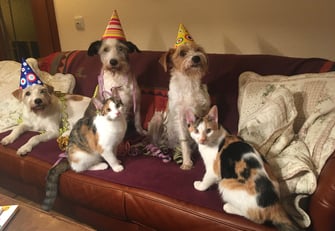 Silvester hat sie mit dem gesamten Rudel gefeiert, mitten drin, mit Katzen und Silvesterhütchen. Ein liebes Erinnerungsfoto.