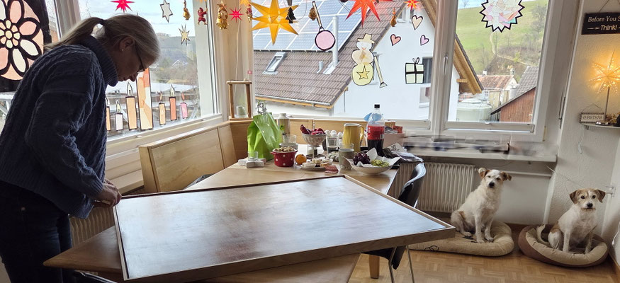 Wir freuen uns auch über die geschenkten Stunden, die wir zusammen haben, erst in der Praxis und dann frühstücken wir noch gemütlich im kleinen Café bei mir in der Gegend. Dann steht für meine Freunde die Heimfahrt Richtung Norden an...