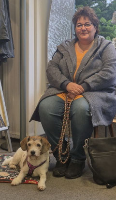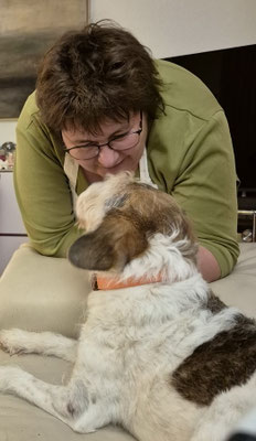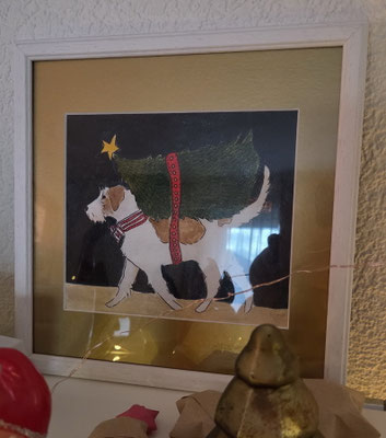 Nach dem Kuscheln mit Alva, der bereits siebenfachen Tante des F-Wurfes von den Streeken und hoffentlich ab Februar noch mit grösserer Nichten/Neffen-Schar gesegnet, rahmt Katrin noch unser Bild, was sie uns mitgebracht hat.