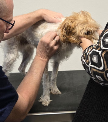 Die Gelegenheit wird auch gleich genutzt, um Hummel noch durch Dr. Blättlers Hände checken zu lassen. Das wurde schon vor ihrem Zuchteinsatz gemacht.
