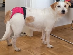 Läufigkeitsbedingt: viel viel Kuscheln und "bedüftig" sein und ganz viel Nähe suchen. Das ist so oder so was Schönes und hilft uns allen...