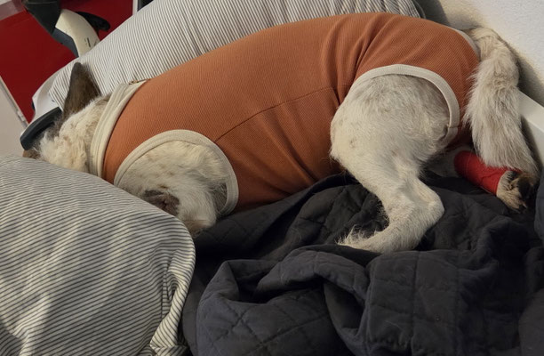 Der Kastrationstermin Mitte November steht uns allen bevor, das ist keine Kleinigkeit für eine 12,5 Jahre alte Hündin... Gleichzeitig soll noch der grosse Knubbel (eine grosse Alterswarze) am
