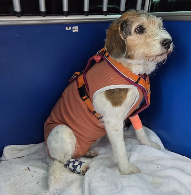 Vorderbein entfernt werden plus eine Wucherung auf der hinteren Pfote. Beides stört Askia und sie leckt sich oft...