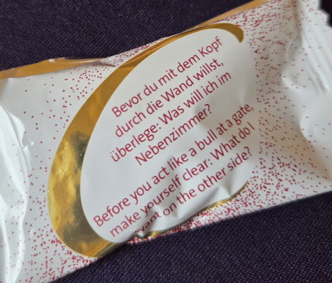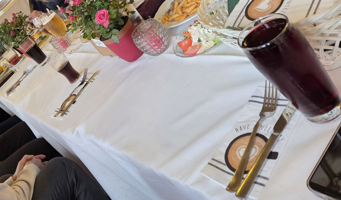 Wir essen zusammen an einer langen Tafel und die Gespräche laufen weiter. Ich bekomme sogar noch ein Geschenk von Gabi und Klaus, wie lieb!