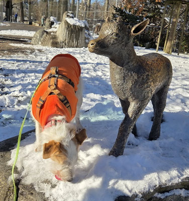 Während das Bronzegeisslein Candis auch zum wiederholten Male ausser Fassung bringt - iiiiiih so gefährlich... lassen Hirsch, Gemsen und auch der Luchs sie und Alva völlig kalt...