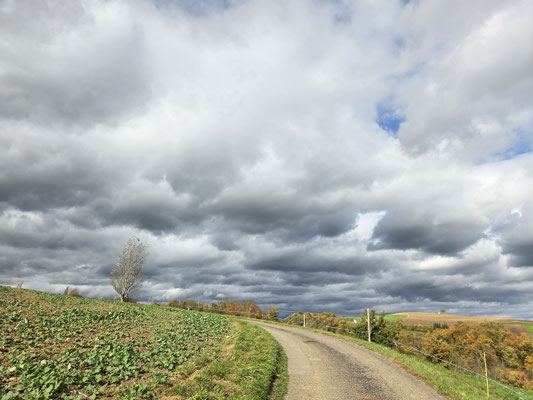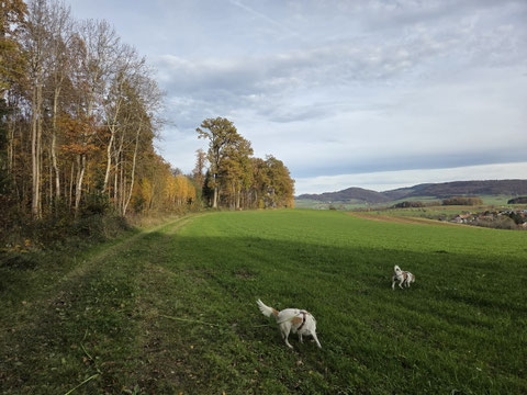 Am Sonntag trinken wir den ersten Kaffee frühmorgens mit Wasco und Frauchen mit Begleitung, so schön, dass wir ihn hierhaben durften beim Spaziergang! Dann fahren wir ins Hotel, um mit unseren