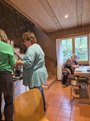 Unser Küchenteam ist in den Vorbereitungen fürs morgige Essen, aber mit Blick auf die Kochtöpfe in der Küche können wir zusammen das Fondue super geniessen.