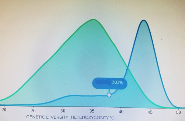 Wurzel, die Mutter aller drei Würfe aus dem Chirsgarten und eine F3-Hündin, hat eine genetische Diversität von 38,9%!