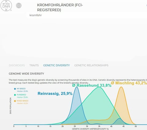 Die Rasse der Kromfohrländer hat eine genetische Diversität von 25,9% (Stand 13. Mai 2018).