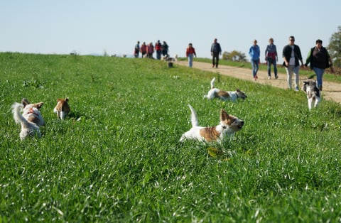 Die Kromi-Spaziergänge sind auch ideal für Interessenten, die sich gerne ein Bild von den Kromis machen möchten. Sie sehen da eine grosse Bandbreite an Hunden, sowohl reinrassige Kromis, als auch Kromfohrländer aus dem VRK-Einkreuzprojekt.
