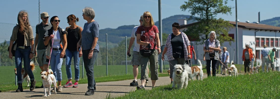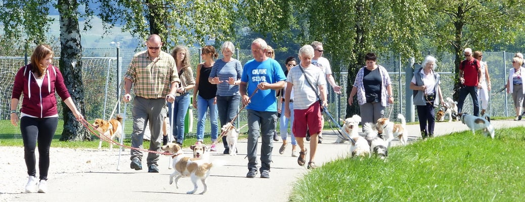 18 Vierbeiner, reinrassige Kromis, Kromis aus dem Einkreuzprojekt und eine Griffonhündin trafen sich in Rünenberg, voller Vorfreude auf die Waldrunde.