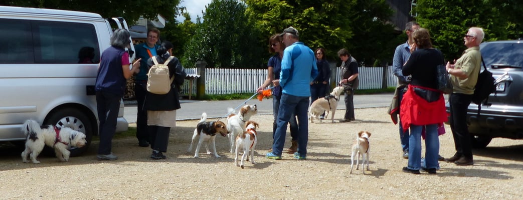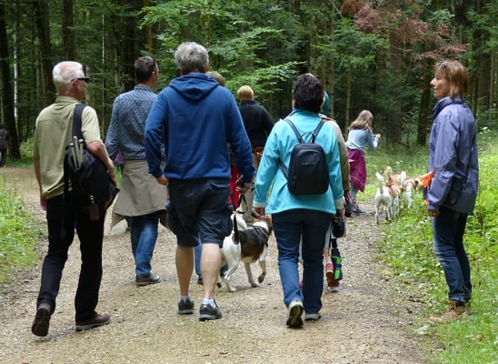Viele von unseren treuen Spaziergangs-Besuchern konnten dieses Mal nicht dabei sein. Ferien, Krankheit, Weiterbildung, Familienfeiern - einiges kam dazwischen. So waren wir an diesem Samstag eine kleine Gruppe, seit langem wieder einmal - 9 Hunde und knapp über 20 Menschen trafen sich in Rünenberg.