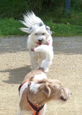 Hätten sich nicht zwei Rüden ausgerechnet in die gleiche schöne Hündin verschossen, es hätte keinen Zusammenstoss gegeben - so kam es zu einem verbalen Austausch von Nettigkeiten - gefährlich anzusehen, harmlos aber in der Ausführung.