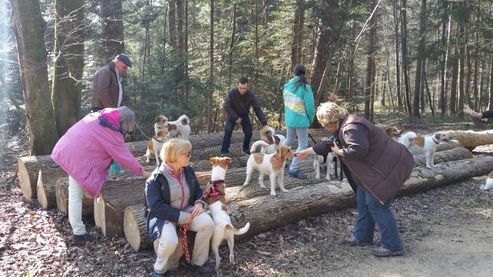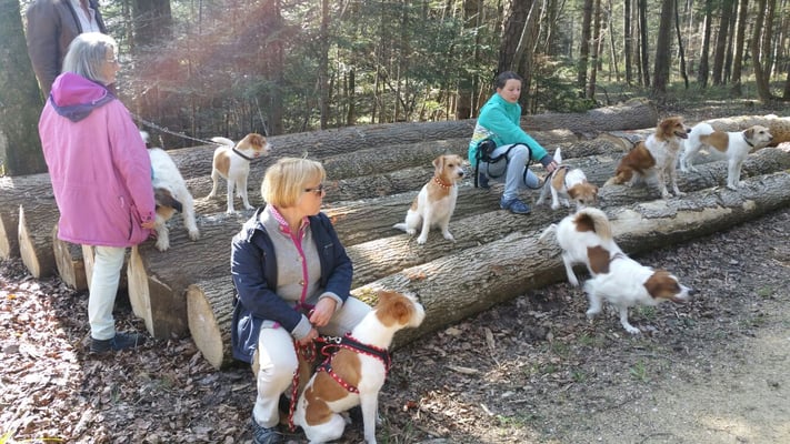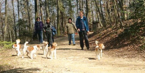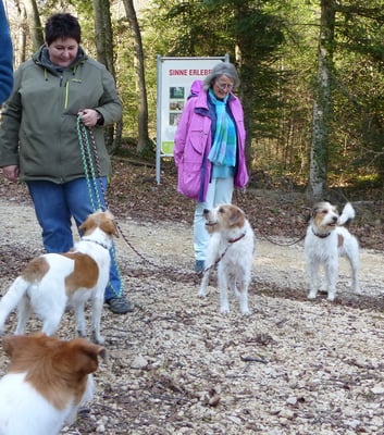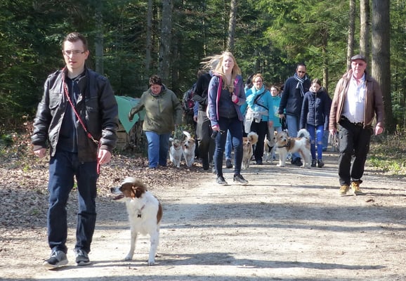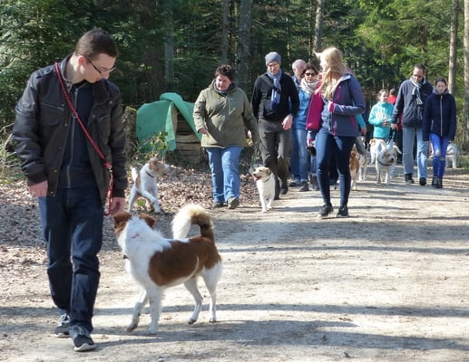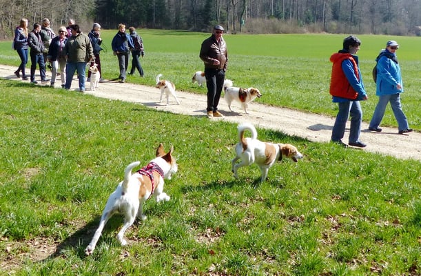 17 Kromis trafen sich und 45 Menschen; Kromibesitzer und an der Rasse Interessierte, die sich einmal ein Bild von diesen Hunden machen wollten - so zogen wir dann los, rasch war man ins Gespräch vertieft, während die Vierbeiner losspurteten und miteinander rannten und Spass hatten.