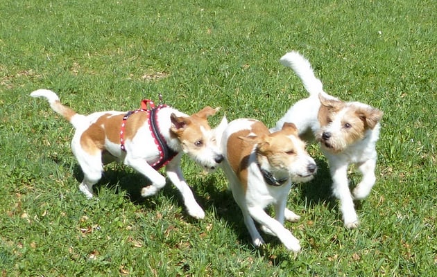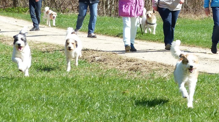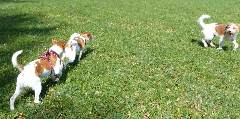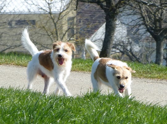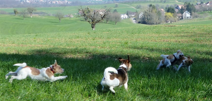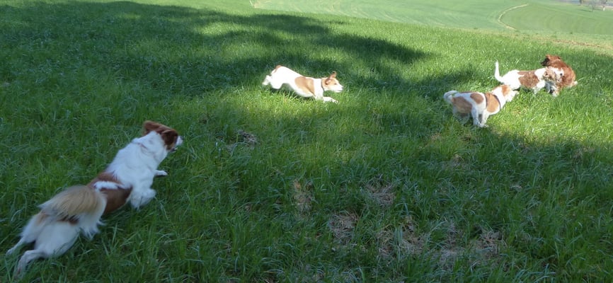 Nach dem anderthalb stündigen Spaziergang waren die Kromis gut ausgepowert, sie rennen ja dann doch den mehrfachen Weg als wir Menschen - und die Renn- und Spielmöglichkeiten wurden rege genutzt.