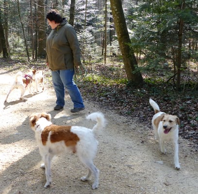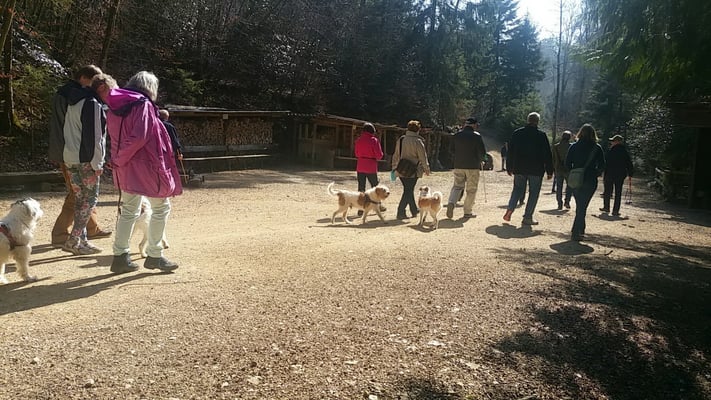 Die bekannte Spaziergangsroute führte uns durch den Rünenberger und Gelterkinder Wald, ein kleines Dreiergrüppchen machte noch einen "Extra-Schlenker" - gut betreut von zwei Kromis, die die drei dann sicher wieder zur Gruppe zurück führten. ;-)