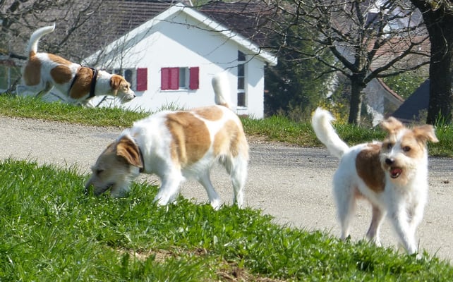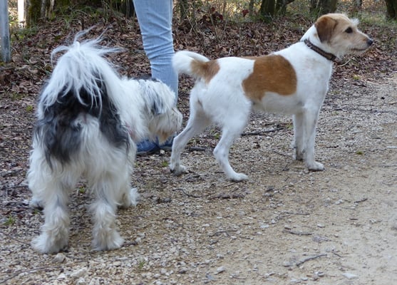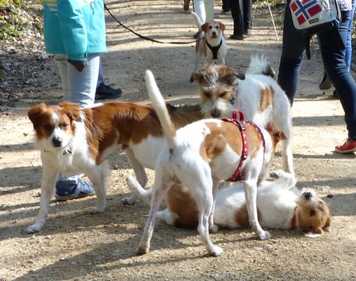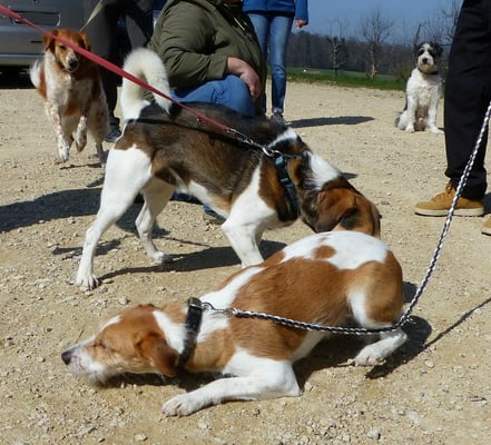 Die Rüden waren in der Überzahl, es gab ein, zwei klare Ansagen zwischen ihnen, alles im unproblematischen Bereich, kein Problem.