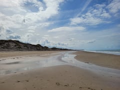 Wir stehen an "Deinem" Strand und denken fest an Dich. Wir laufen eine schöne Nordseerunde mit Wurzel, Candis und Alva und sind doch nicht zu fünft, sondern zu sechst unterwegs.
